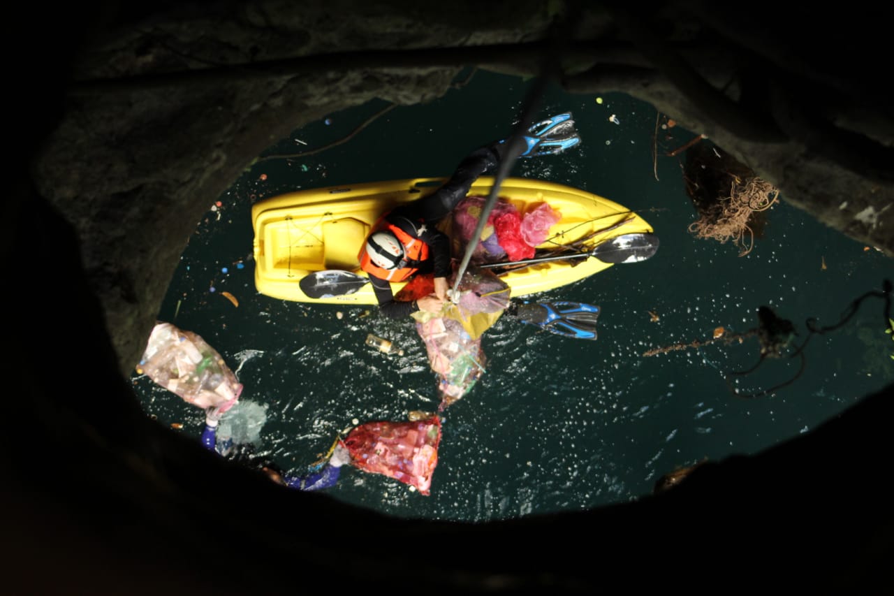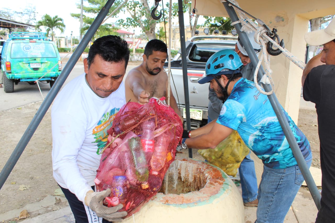 En esta jornada se lograron recolectar 1 mil 50 kilogramos de residuos sólidos que estaban tanto en el fondo del cenote como en las principales calles del municipio.