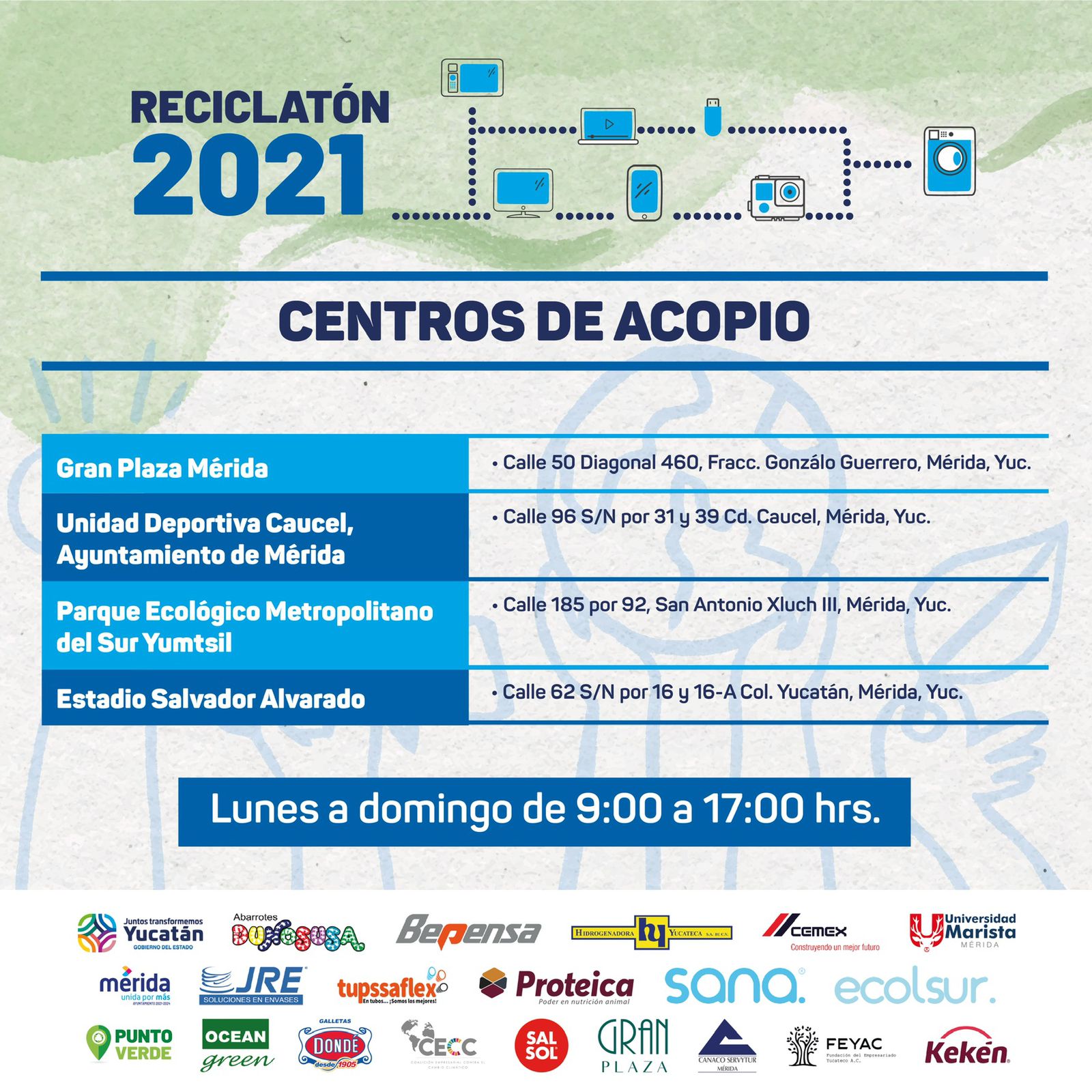 Por séptima ocasión, se realizará el Reciclatón, del 22 al 28 de noviembre del presente, en el cual se habilitará 16 centros de acopio en distintos puntos de la ciudad de Mérida y sus