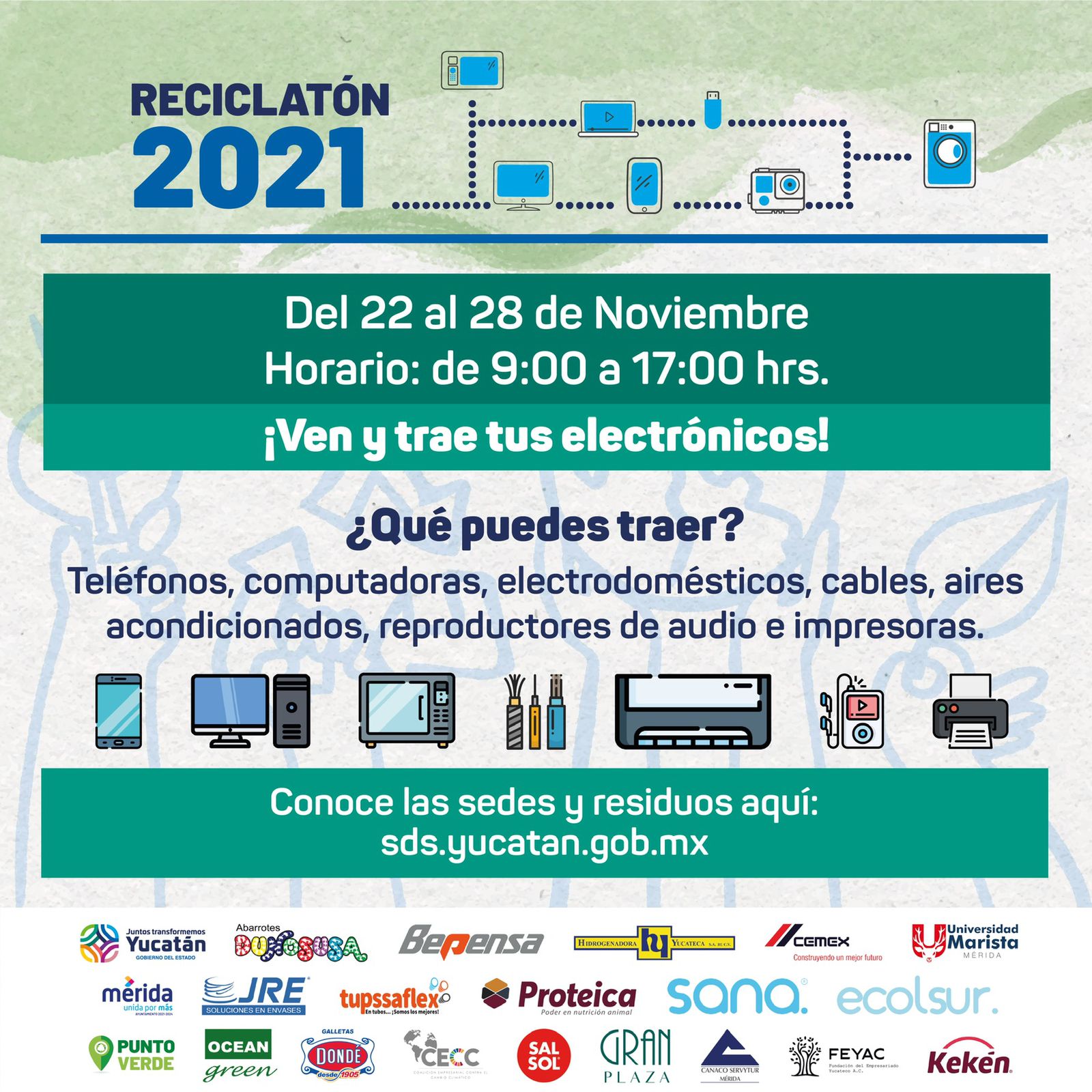 En la edición anterior, se logró reunir un total de 21.750 toneladas de residuos electrónicos y, aunque los puntos de recolección estarán en Mérida, se invita a la población de todos los municipios para superar esta meta, coordinando la logística y el traslado de los desechos con la SDS.