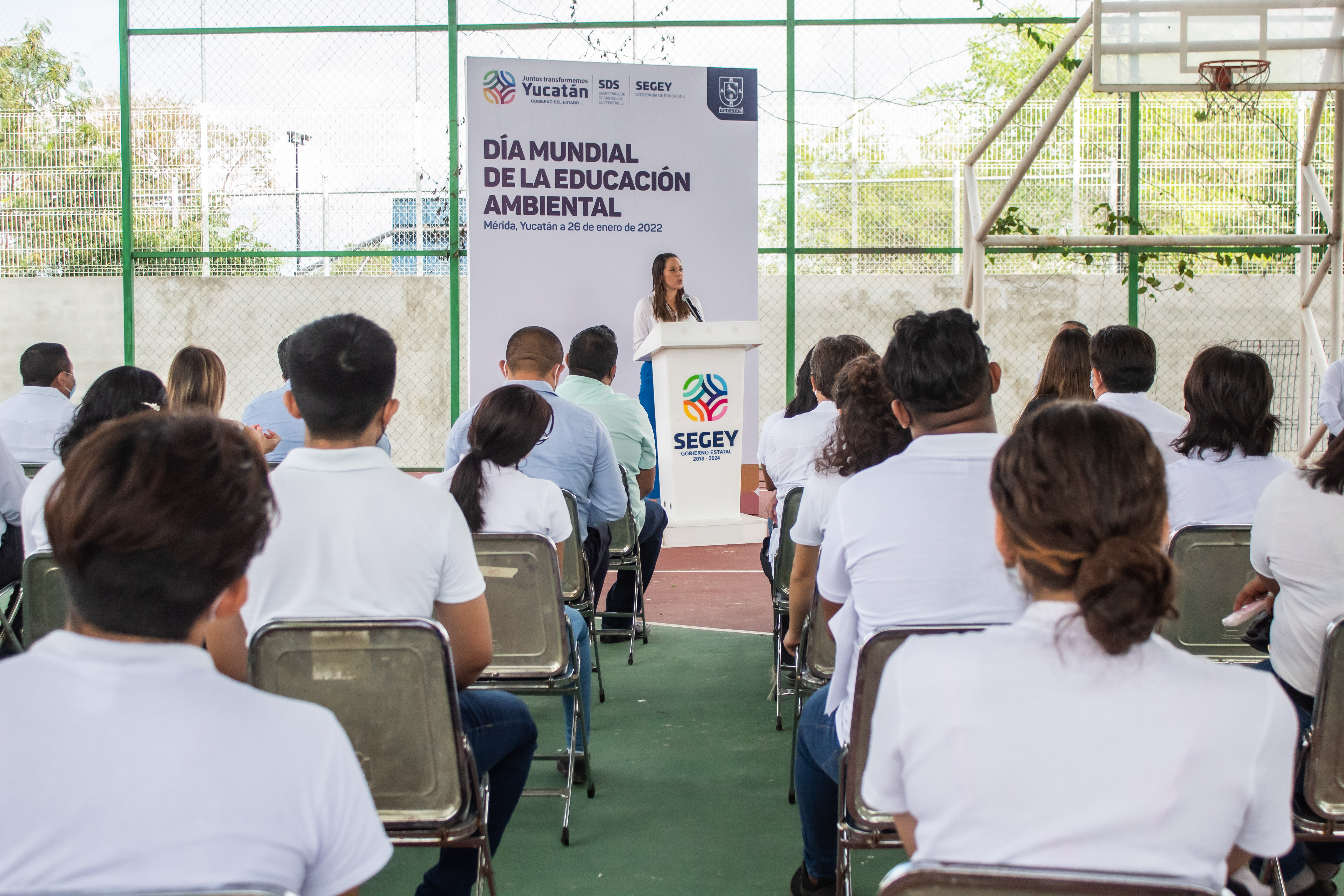El acto se celebró en el marco del Día de la Educación Ambiental, que recuerda la importancia de trabajar en unidad, creando conciencia y compromiso, para impulsar hábitos responsables en la vida diaria, que contribuyan con hacer de Yucatán un estado cada vez más sustentable.