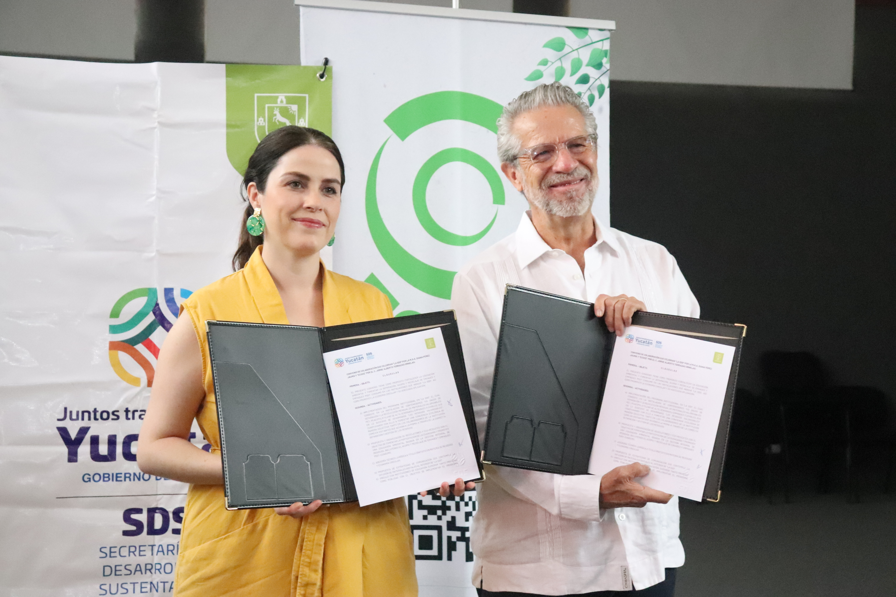 Mérida, Yucatán a 20 de junio de 2024.- Con el objetivo de fortalecer la educación ambiental y fomentar la separación y reciclaje de envases y empaques post-consumo, la Secretaría de Desarrollo Sustentable (SDS) del Estado de Yucatán, firmó hoy un Convenio de Colaboración con Ecología y Compromiso Empresarial A.C. (ECOCE), a través de sus representantes, Diana Pérez Jaumá, y Jorge Terrazas Ornelas, respectivamente.