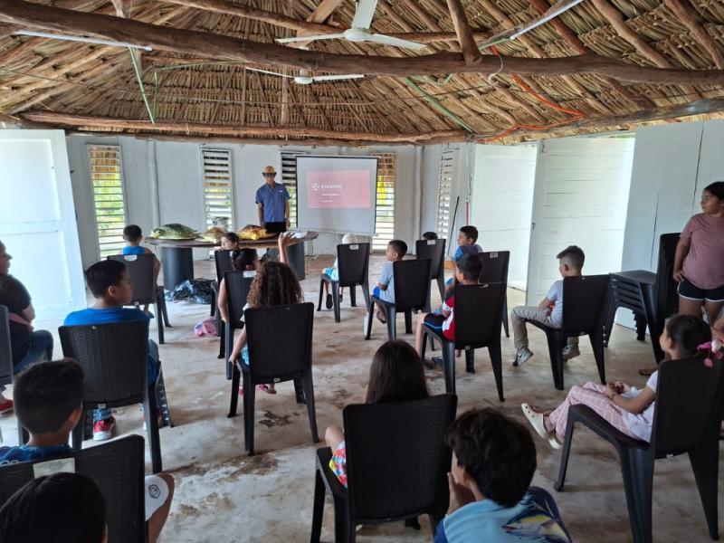 En esta actividad, 35 niñas y niños del puerto participaron activamente en dinámicas educativas sobre la ecología de las tortugas marinas, su papel en el ecosistema y las maneras en que pueden contribuir a su protección desde su entorno familiar y escolar.