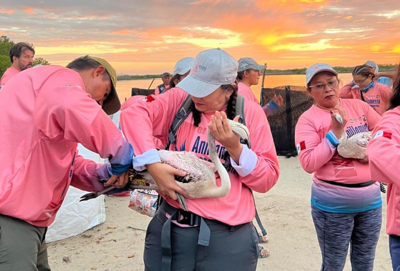 En coordinación con la Conanp, se realizaron jornadas de anillamiento en Ría Lagartos y Ría Celestún, acción que permitirá reforzar el monitoreo y la protección de esta especie emblemática