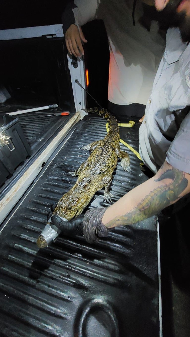 En respuesta a una solicitud municipal, la SDS rescató y trasladó de forma segura a un cocodrilo de pantano avistado cerca un campamento tortuguero en Chabihau.